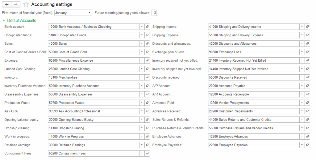 Navigate to Admin panel – Accounting settings. Some of the settings will already be in place if you have successfully run the Setup wizard.