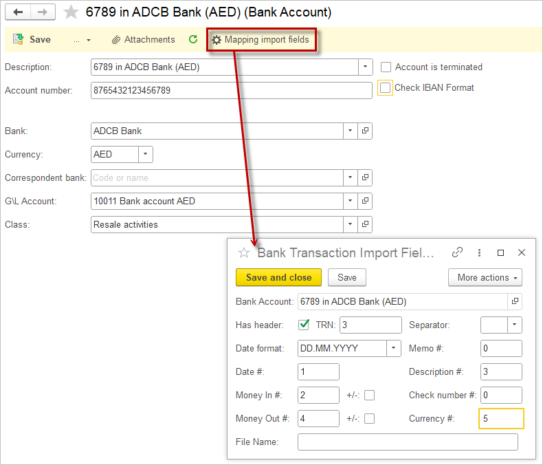 - TRN column #: Column number for Tax Registation Number or Company name that can be used in Mapping.