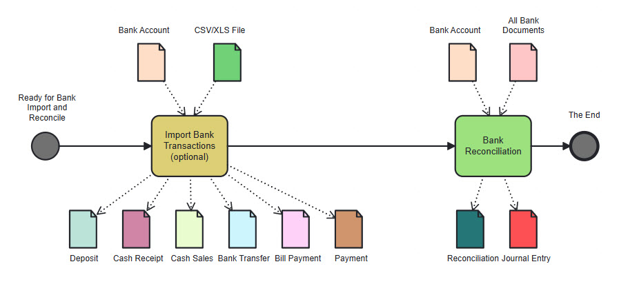 Bank statement import process and bank reconciliation at the and of period: