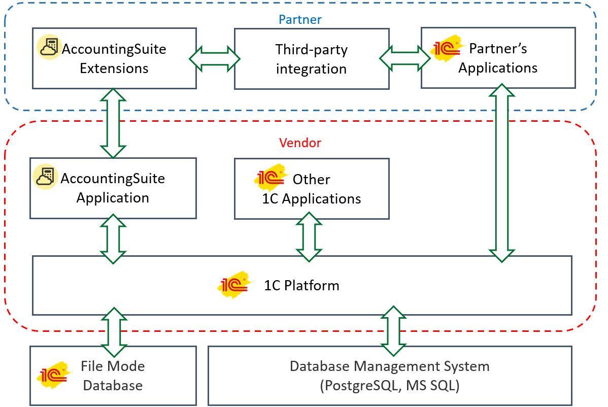 Our partners can develop customization Extensions for the AccountingSuite system, make integrations and their own standalone application solutions on the 1C Platform. All business needs can be covered by customizations or the choice of a ready-made 1C Applications.