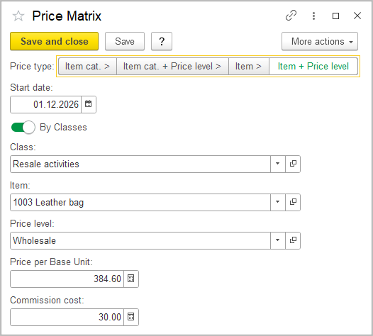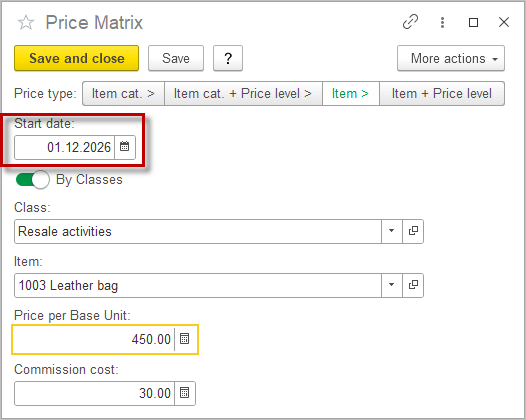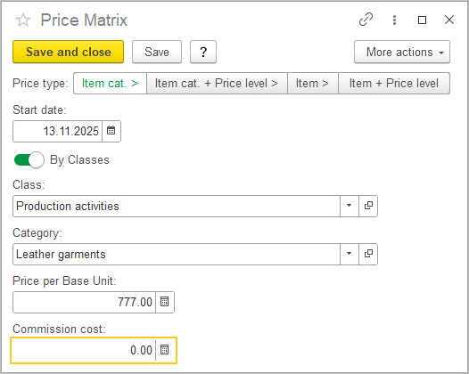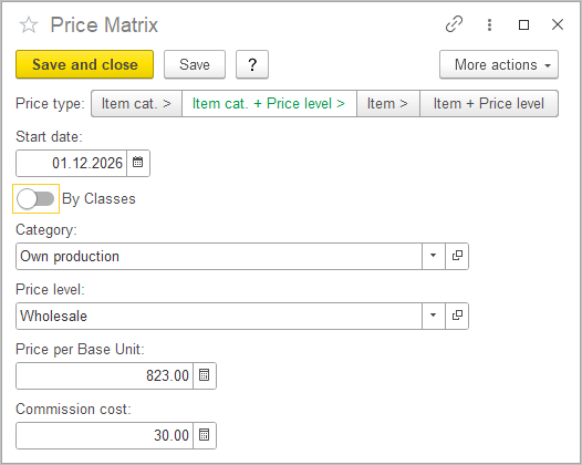 Each option of the Price Matrix in AccountingSuite contains the “By Classes” option, which allows users to set prices separately for different Classes. For example, a wholesale class can have specially tailored prices distinct from retail customers, or a premium class could be offered higher prices reflecting added value or exclusivity.