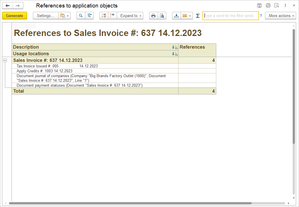 The Check usage button shows the places of usage this document to be sure that you edit key fields without consequences to break related documents. Be confident in what you are doing. Save all related documents into a Draft and edit them later, if necessary. This is especially important for replacing the Company (Customer) field and the Date when the sequence of documents may be disrupted.