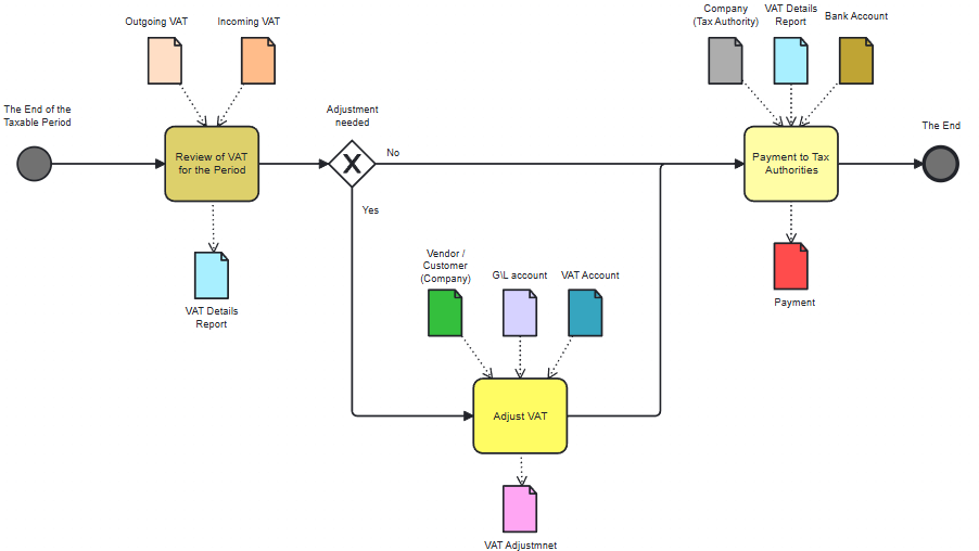 VAT payment process and reporting to the authorities at the end of taxable period: